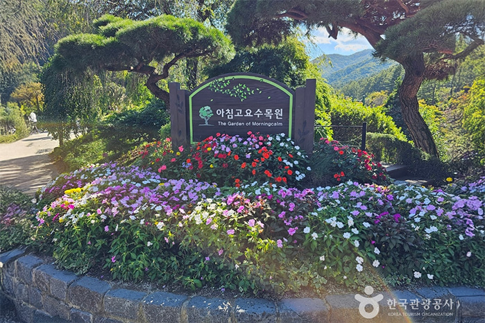 아침 고요수목원은 축령산의 빼어난 자연경관을 배경으로 하여 한국의 미를 듬뿍 담은 정원들을